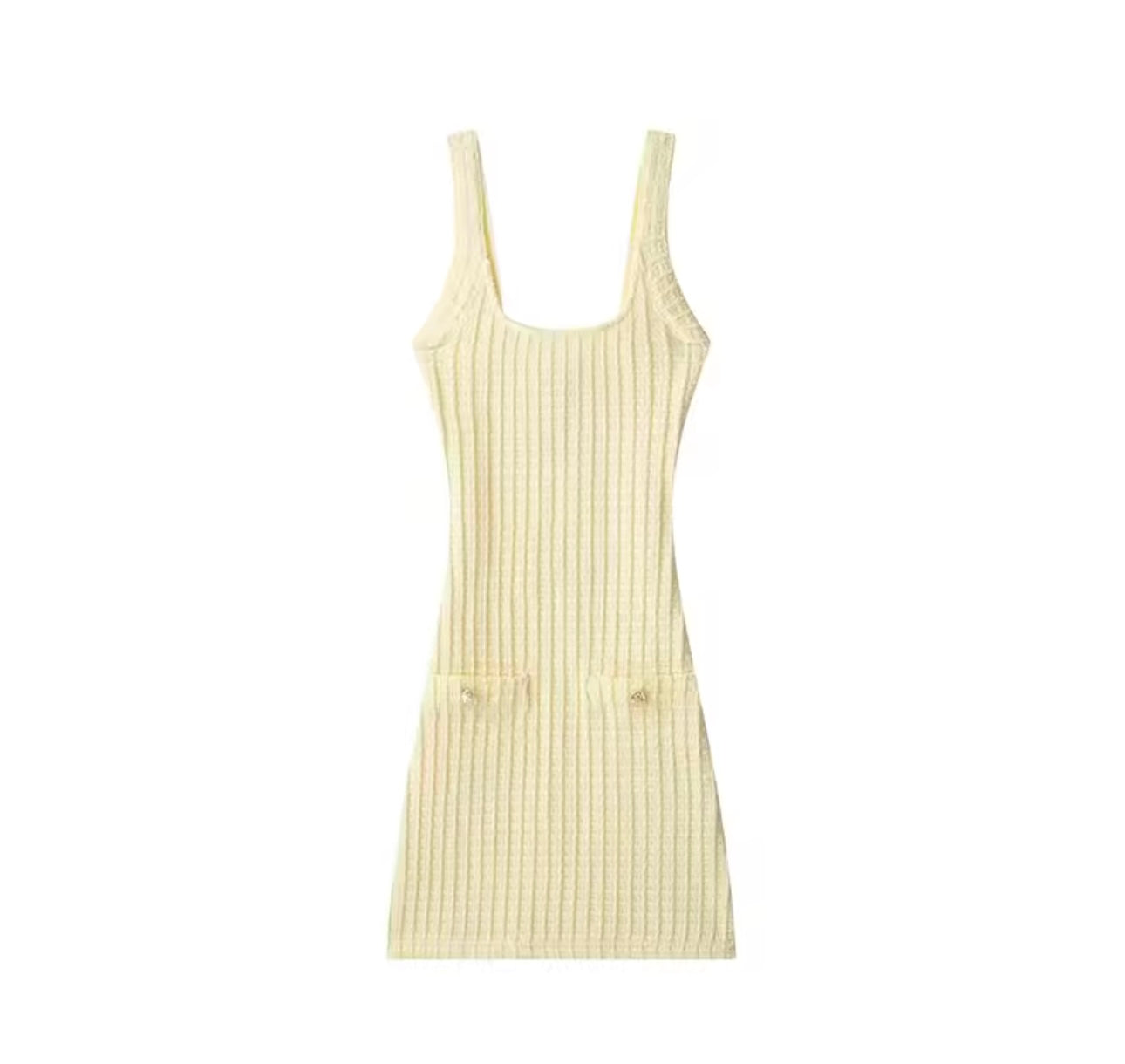 Aaliyah Yellow Gold Button Pocket detail Dress.